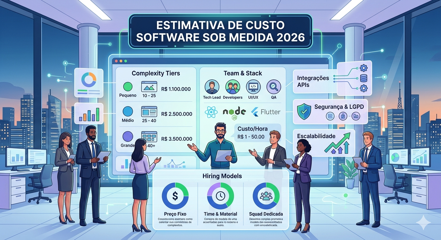Quanto custa desenvolver software sob medida em 2026 é, sem dúvida, uma das perguntas mais frequentes — e mais mal respondidas — que gestores, founders e diretores de tecnologia fazem antes de iniciar um projeto.